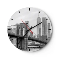 Nástenné hodiny - Brooklynský most proti panoráme mesta v čiernobielej farbe - 30x30cm - Newyorské zázraky - Moderná nástenná dekorácia do obývacej izby, kuchyne a spálne ARTTOR