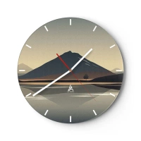 Nástenné hodiny - Hora nad jazerom v pastelovom svetle s odrazom vo vode - 30x30cm - Zrkadlový odraz - Moderná nástenná dekorácia do obývacej izby, kuchyne a spálne ARTTOR