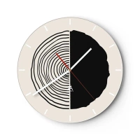 Nástenné hodiny - Minimalistický motív prierezu kmeňa v kontrastných farbách - 30x30cm - Pol na pol - Moderná nástenná dekorácia do obývacej izby, kuchyne a spálne ARTTOR