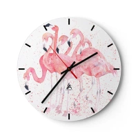 Nástenné hodiny - Skupina ružových plameniakov v umeleckom akvarelovom štýle. - 30x30cm - Ružový ansámbl - Moderná nástenná dekorácia do obývacej izby, kuchyne a spálne ARTTOR