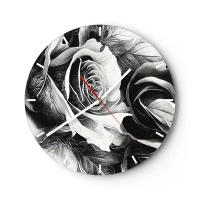 Nástenné hodiny - Čiernobiele umelecké dielo s ružami v klasickom štýle kresby - 30x30cm - Navždy kráľovná - Moderná nástenná dekorácia do obývacej izby, kuchyne a spálne ARTTOR