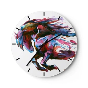 Nástenné hodiny - Dynamický kôň v akvarelových farbách s roztekajúcou hrivou - 30x30cm - Nadšenie - Moderná nástenná dekorácia do obývacej izby, kuchyne a spálne ARTTOR