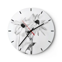 Nástenné hodiny - Tri čiernobiele kvety s jemne ovisnutými okvetnými lístkami - 30x30cm - Nikto nechce byť sám - Moderná nástenná dekorácia do obývacej izby, kuchyne a spálne ARTTOR