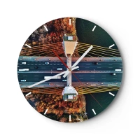 Nástenné hodiny - Letecký pohľad na lanový most cez rieku v jesennej scenérii - 30x30cm - Za vodami, za lesmi - Moderná nástenná dekorácia do obývacej izby, kuchyne a spálne ARTTOR