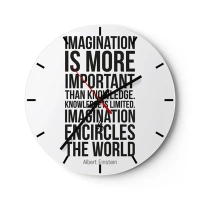Nástenné hodiny - Inšpiratívny citát Alberta Einsteina - 30x30cm - Einstein o sile predstavivosti - Moderná nástenná dekorácia do obývacej izby, kuchyne a spálne ARTTOR