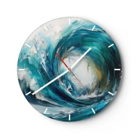 Nástenné hodiny - Dynamická morská vlna víriaca v tyrkysových farbách - 30x30cm - Morský portál - Moderná nástenná dekorácia do obývacej izby, kuchyne a spálne ARTTOR