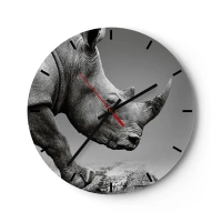 Nástenné hodiny - Nosorožec v čiernobielom štýle na neutrálnom pozadí - 30x30cm - Nezastaviteľná sila - Moderná nástenná dekorácia do obývacej izby, kuchyne a spálne ARTTOR