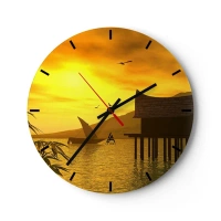Nástenné hodiny - Západ slnka nad jazerom s domom na koloch - 30x30cm - Vytúžený pokoj - Moderná nástenná dekorácia do obývacej izby, kuchyne a spálne ARTTOR