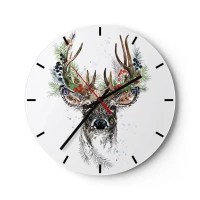 Nástenné hodiny - Štylizovaný jeleň s ozdobnými parohmi - 30x30cm - V slávnostnom rúchu - Moderná nástenná dekorácia do obývacej izby, kuchyne a spálne ARTTOR
