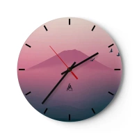 Nástenné hodiny - Hora za súmraku s ružovými a fialovými odtieňmi - 30x30cm - Pútnici nad oblakmi - Moderná nástenná dekorácia do obývacej izby, kuchyne a spálne ARTTOR