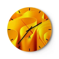 Nástenné hodiny - Abstraktné zlaté tvary pripomínajúce svetelné vlny - 30x30cm - Ako slnečné vlny - Moderná nástenná dekorácia do obývacej izby, kuchyne a spálne ARTTOR