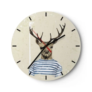 Nástenné hodiny - Kreslený jeleň v pruhovanom oblečení na béžovom pozadí - 30x30cm - Pretože mám rád pruhované košele! - Moderná nástenná dekorácia do obývacej izby, kuchyne a spálne ARTTOR