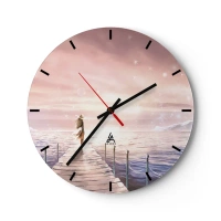 Nástenné hodiny - Žena na móle v pastelovej, magickej krajine - 30x30cm - Vo svetle sna - Moderná nástenná dekorácia do obývacej izby, kuchyne a spálne ARTTOR
