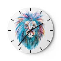 Nástenné hodiny - Akvarelová levia hlava v modrej a ružovej farbe - 30x30cm - Elektrizujúca aura - Moderná nástenná dekorácia do obývacej izby, kuchyne a spálne ARTTOR
