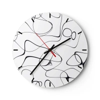 Nástenné hodiny - Čierne abstraktné čiary na bielom pozadí - 30x30cm - Cesty života, zákruty osudu - Moderná nástenná dekorácia do obývacej izby, kuchyne a spálne ARTTOR