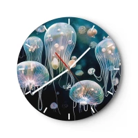 Nástenné hodiny - Pastelovo sfarbené medúzy plávajúce v hĺbkach - 30x30cm - Podvodný ples - Moderná nástenná dekorácia do obývacej izby, kuchyne a spálne ARTTOR