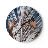 Nástenné hodiny - Ruky zdobené prsteňmi za bielymi palmovými listami - 30x30cm - Šamanové dievča? - Moderná nástenná dekorácia do obývacej izby, kuchyne a spálne ARTTOR
