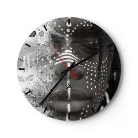Nástenné hodiny - Čiernobiely portrét s ústami pokrytými štetcom a krížom - 30x30cm - Ani slovo - Moderná nástenná dekorácia do obývacej izby, kuchyne a spálne ARTTOR