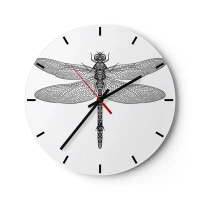 Nástenné hodiny - Detailná ilustrácia vážky v čiernej farbe na bielom pozadí - 30x30cm - Presnosť prírody - Moderná nástenná dekorácia do obývacej izby, kuchyne a spálne ARTTOR