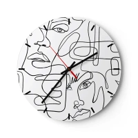 Nástenné hodiny - Minimalistické náčrty tvárí v tvare linky na bielom pozadí - 30x30cm - V spletených emóciách - Moderná nástenná dekorácia do obývacej izby, kuchyne a spálne ARTTOR