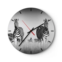 Nástenné hodiny - Dve zebry v savane v čiernobielej farbe - 30x30cm - A svet je aj tak čierno-biely - Moderná nástenná dekorácia do obývacej izby, kuchyne a spálne ARTTOR