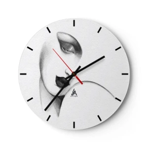 Nástenné hodiny - Minimalistický portrét ženy v odtieňoch sivej. - 30x30cm - V štýle Lempickej - Moderná nástenná dekorácia do obývacej izby, kuchyne a spálne ARTTOR
