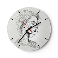 Nástenné hodiny - Čiernobiela skica ženskej tváre v myšlienkach - 30x30cm - Portrét v zamyslení - Moderná nástenná dekorácia do obývacej izby, kuchyne a spálne ARTTOR