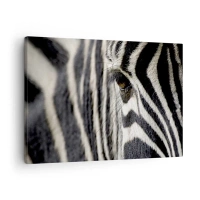 Obraz na plátne - Detailný záber zebrieho oka s čiernymi a bielymi pruhmi - 70x50cm - Portrét s pruhmi - Moderná nástenná dekorácia do obývacej izby a spálne ARTTOR