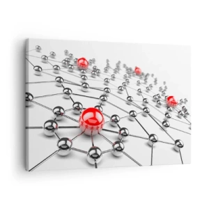 Obraz na plátne - Sieť kovových guličiek s červenými akcentmi - 70x50cm - Strieborná sieť - Moderná nástenná dekorácia do obývacej izby a spálne ARTTOR