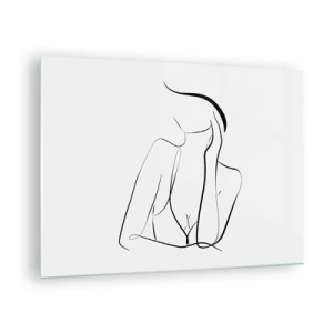 Obraz na skle - Jednoduchá čiara zobrazujúca obrys tela v odtieňoch čiernej a bielej - 70x50cm - Na vlne snov - Moderná nástenná dekorácia do obývacej izby a spálne ARTTOR