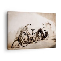 Obraz na plátne - Dva bicykle opreté o starú stenu v retro štýle - 70x50cm - Nezabudnuteľné kúzlo minulosti - Moderná nástenná dekorácia do obývacej izby a spálne ARTTOR