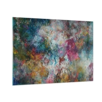 Obraz na skle - Abstraktná kompozícia farebných kvetov v intenzívnych farbách. - 70x50cm - V plnom rozkvete - Moderná nástenná dekorácia do obývacej izby a spálne ARTTOR