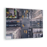 Obraz na skle - Letecký pohľad na rušnú križovatku v meste - 70x50cm - Jednoduchá voľba - Moderná nástenná dekorácia do obývacej izby a spálne ARTTOR