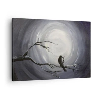 Obraz na plátne - Čierny vták na konári v mesačnom svite - 70x50cm - Kľúč k tajomstvu noci - Moderná nástenná dekorácia do obývacej izby a spálne ARTTOR