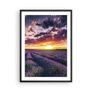 Plagát v čiernom ráme - Levanduľové pole pri západe slnka - 50x70cm - Levanduľový svet - Moderná nástenná dekorácia do obývacej izby a spálne ARTTOR