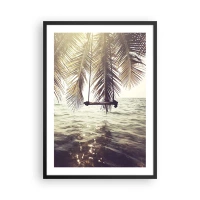 Plagát v čiernom ráme - Hojdačka pod palmami pri pokojnom mori - 50x70cm - Hojdať sa ľubovoľne v oblakoch - Moderná nástenná dekorácia do obývacej izby a spálne ARTTOR