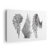Obraz na plátne - Tri čiernobiele náčrty krídel v minimalistickom štýle. - 70x50cm - Aj ty sa môžeš stať anjelom - Moderná nástenná dekorácia do obývacej izby a spálne ARTTOR
