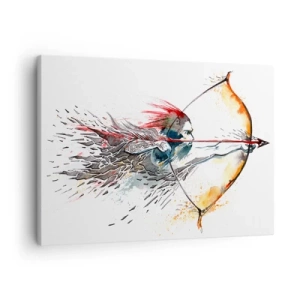 Obraz na plátne - Dynamická akvarelová maľba bojovníka s lukom a šípom - 70x50cm - Mýtický bojovník s ohnivým lukom - Moderná nástenná dekorácia do obývacej izby a spálne ARTTOR
