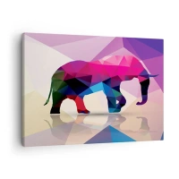 Obraz na plátne - Geometrická silueta slona v živých farbách - 70x50cm - Krištáľový dinosaurus - Moderná nástenná dekorácia do obývacej izby a spálne ARTTOR