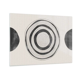 Obraz na skle - Čiernobiely abstraktný vzor so sústrednými kruhmi - 70x50cm - Dôležité je to, čo je uprostred - Moderná nástenná dekorácia do obývacej izby a spálne ARTTOR