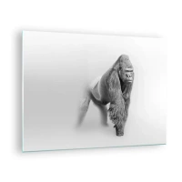 Obraz na skle - Čiernobiely portrét majestátnej gorily na bielom pozadí - 70x50cm - Istý si svojou silou - Moderná nástenná dekorácia do obývacej izby a spálne ARTTOR