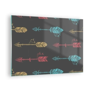 Obraz na skle - Farebné šípky na tmavom pozadí v grafickom rozložení - 70x50cm - Do jednej rady - Moderná nástenná dekorácia do obývacej izby a spálne ARTTOR