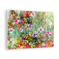 Obraz na skle - Farebné kvety v umeleckej kompozícii - 70x50cm - Do kvetov, do zahynutia - Moderná nástenná dekorácia do obývacej izby a spálne ARTTOR