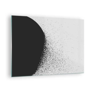 Obraz na skle - Abstrakcia rozpadajúcej sa čiernej hmoty na bielom pozadí - 70x50cm - Pohyb častíc - Moderná nástenná dekorácia do obývacej izby a spálne ARTTOR