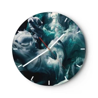 Nástenné hodiny - Abstraktná kompozícia dymu a farby v zelených a sivých tónoch. - 30x30cm - Pohyb farby - Moderná nástenná dekorácia do obývacej izby, kuchyne a spálne ARTTOR