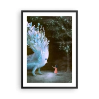 Plagát v čiernom ráme - Dievča v lese stretne magického tvora v žiarivom prostredí. - 50x70cm - Fantastické stretnutie - Moderná nástenná dekorácia do obývacej izby a spálne ARTTOR