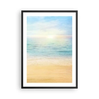 Plagát v čiernom ráme - Pokojný výhľad na pláž a more pri východe slnka - 50x70cm - Veľká modrá - Moderná nástenná dekorácia do obývacej izby a spálne ARTTOR