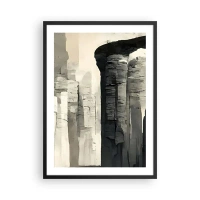 Plagát v čiernom ráme - Monumentálne skalné útvary v odtieňoch sivej - 50x70cm - Majestátnosť starožitnosti - Moderná nástenná dekorácia do obývacej izby a spálne ARTTOR