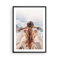 Plagát v čiernom ráme - Žena v boho šatách s výhľadom na more - 50x70cm - Na ceste ku šťastiu - Moderná nástenná dekorácia do obývacej izby a spálne ARTTOR
