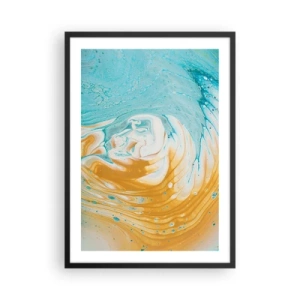 Plagát v čiernom ráme - Abstraktný vír v odtieňoch modrej a oranžovej - 50x70cm - Pastelový vír - Moderná nástenná dekorácia do obývacej izby a spálne ARTTOR